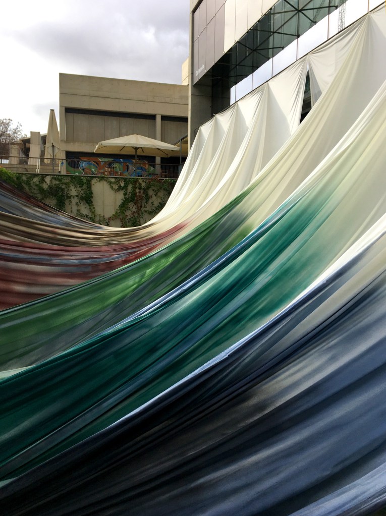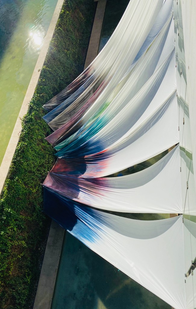 Degradado bioclimático es un lienzo de 500 m2 en forma de embudo realizado íntegramente con materiales ecológicos o reciclados.